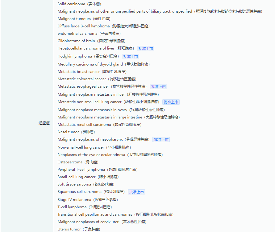 卡瑞利珠单抗适应症查询(部分)