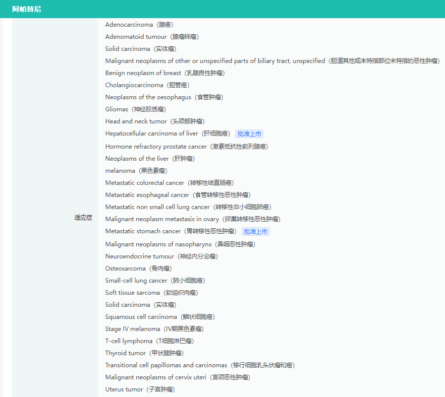 阿帕替尼适应症查询(部分)