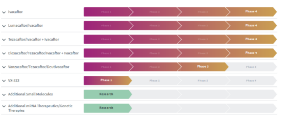 Vertex 正在针对严重疾病开发具有潜在变革性的小分子、mRNA、细胞和基因疗法等多元化产品线。临床开发项目的最新进展和预期进展概述如下。