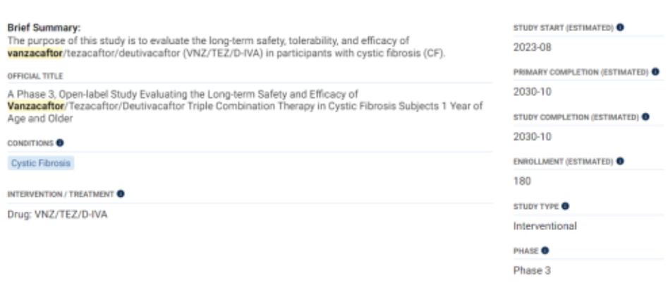 Vanzacaftor/tezacaftor/deutivacaftor,治疗囊性纤维化的新三联疗法。