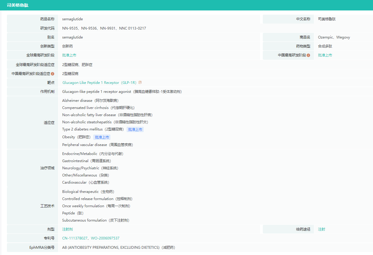 司美格鲁肽的效果好于利拉鲁肽,销售额约是利拉鲁肽的2倍,若要在这个领域中争个“药王”,要打败的目标其实是司美格鲁肽。