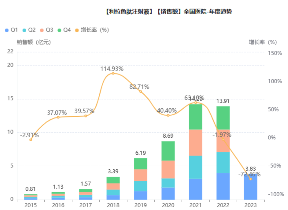 华东医药的利拉鲁肽注射液最早于今年3月获批上市,用于治疗糖尿病;今年7月,其肥胖或超重适应症的上市许可申请获得批准。
