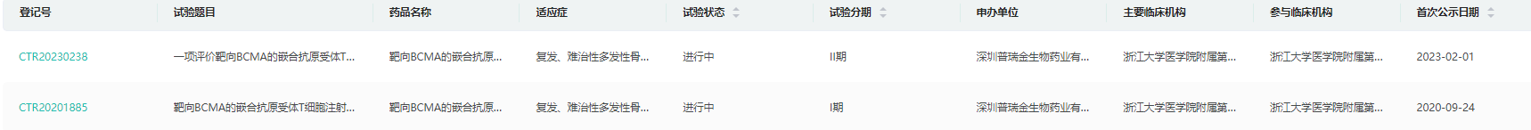 目前,谱新生物的靶向BCMA的嵌合抗原受体T细胞注射液已进入II期临床阶段。