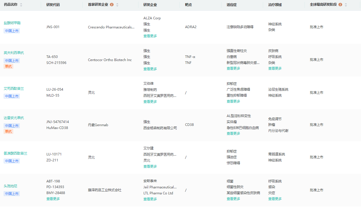 截图来源:药融云全球药物研发数据库