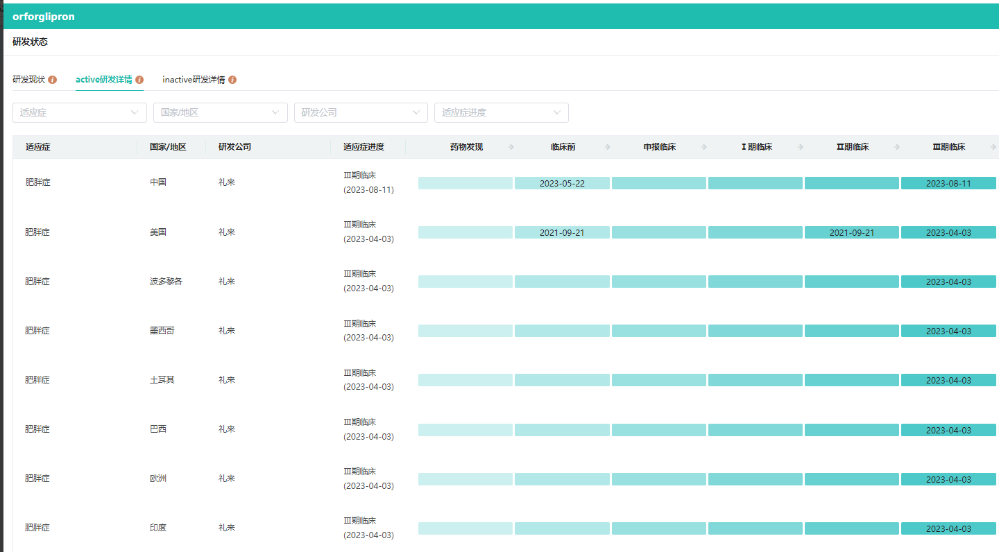 4. 礼来口服 GLP-1R 激动剂在中国启动 3 期临床