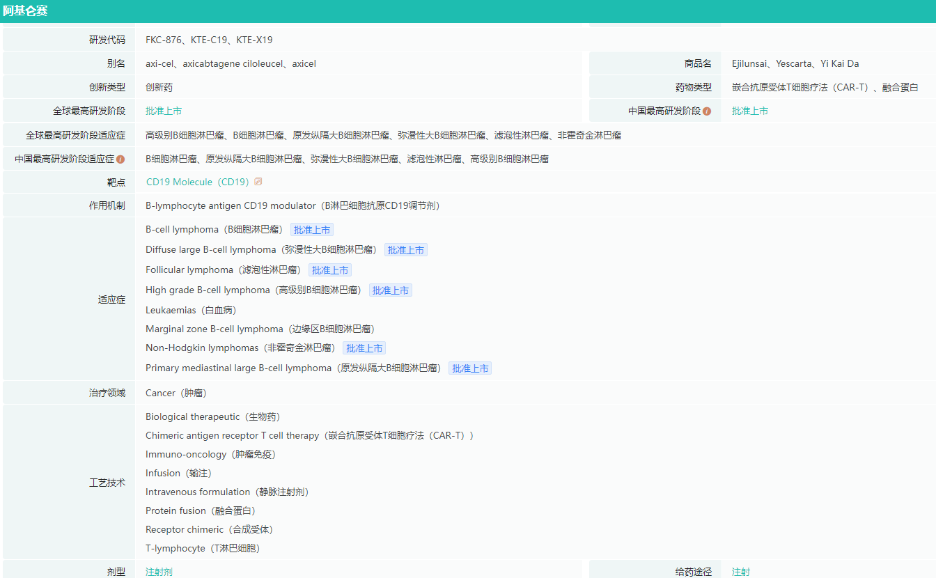 而瑞基奥仑赛注射液是国内首个一类新药CAR-T产品,于2021年9月获批上市,定价为一针129万元,用于治疗经过二线或以上系统性治疗后复发或难治大B细胞淋巴瘤成年患者以及滤泡性淋巴瘤患者。2022年进入医保目录初审名单中,但最终也没有进入医保目录。