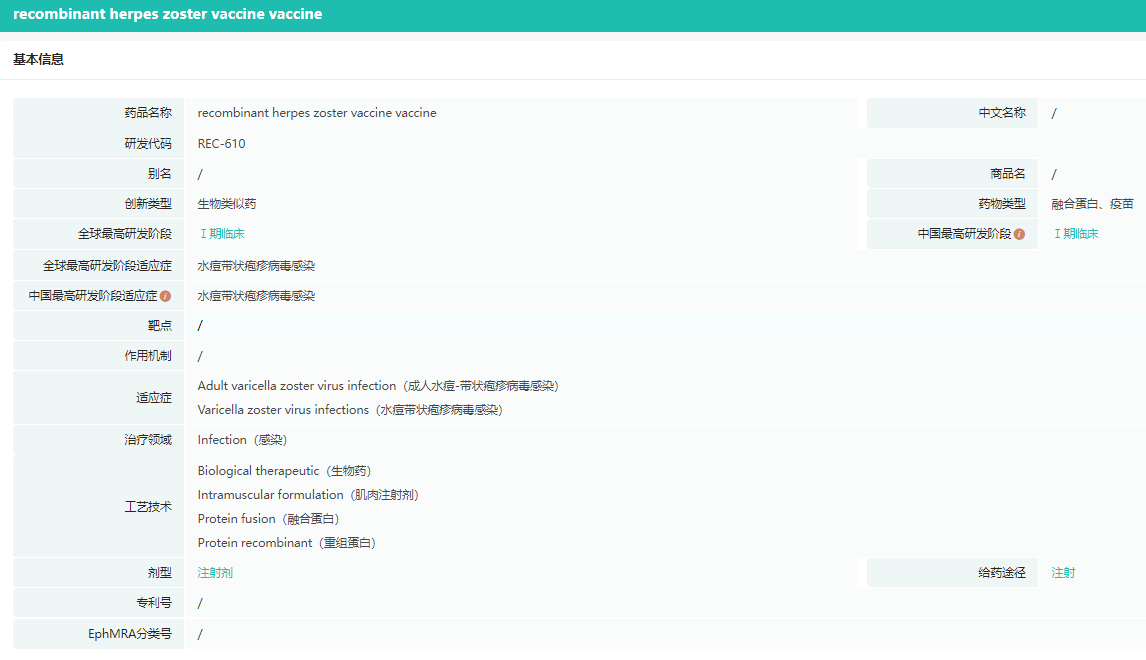 REC610-新佐剂重组带状疱疹疫苗