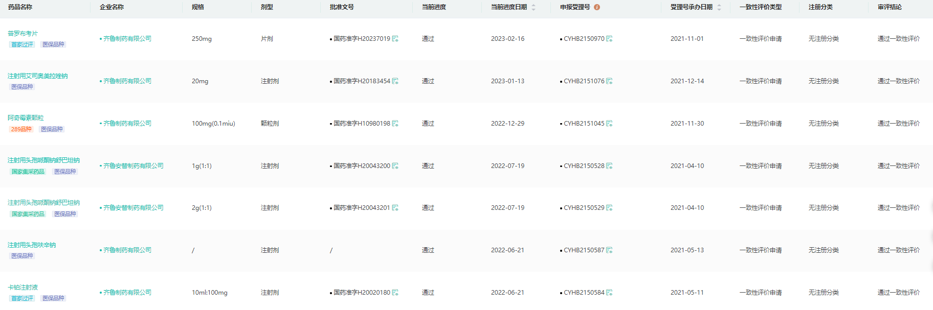 今年以来,齐鲁制药(含齐鲁安替制药、山东安信制药等)有23个品种(按药品名统计)获批上市,包括1个1类新药(伊鲁阿克片)以及23个仿制药。其中奥拉帕利片、培唑帕尼片、注射用醋酸奥曲肽微球为国内首仿+首家过评。