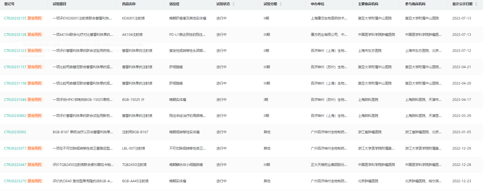 替雷利珠单抗国内临床试验
