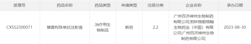 雷替丽珠单抗注射液上市申报情况