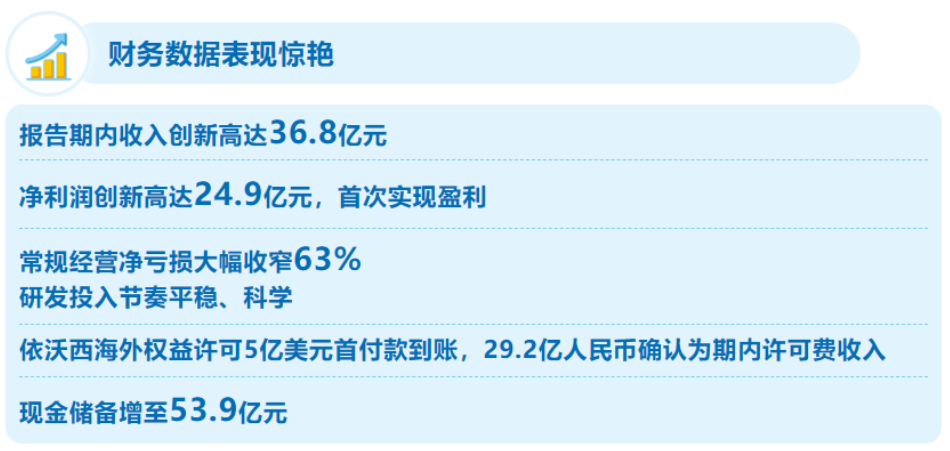 报告期内,公司自主研发的全球首个上市肿瘤免疫双抗新药开坦尼®(PD-1/CTLA-4双抗,卡度尼利单抗注射液)实现销售收入6.06亿元人民币,推动公司上半年实现产品销售额7.95亿元。