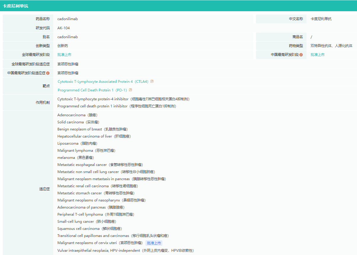 卡度尼利单抗基本信息