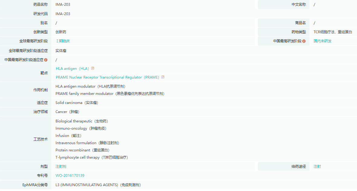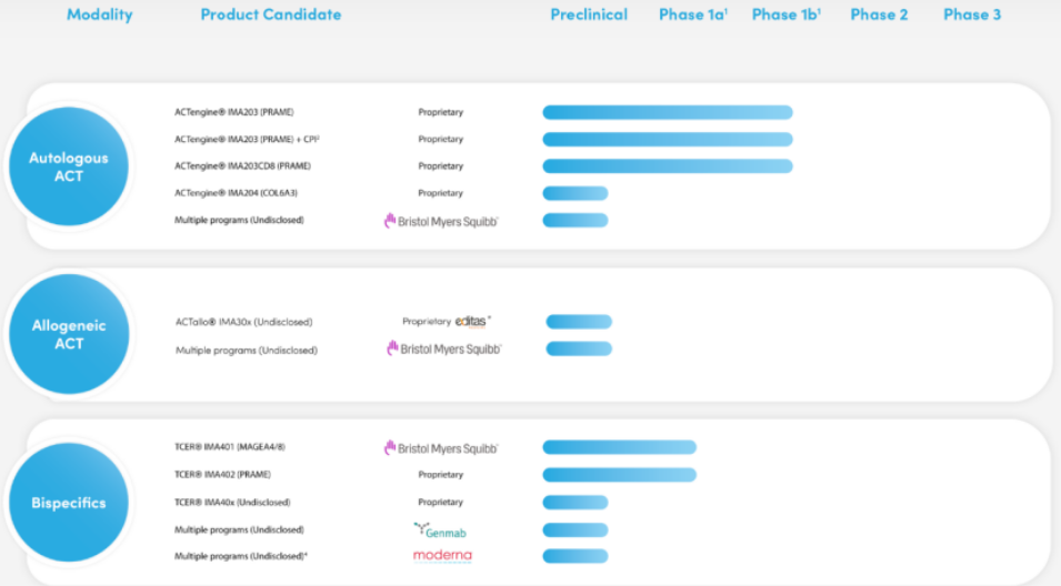 两家公司将利用 Immatics 的 XPRESIDENT® 靶点发现平台和 Moderna 的 mRNA 技术开发新型癌症疫苗,合作内容包括评估 Immatics 的研究性 IMA203 PRAME TCR-T 与 Moderna 的研究性 PRAME mRNA 癌症疫苗的结合情况。其中Immatics公司的IMA203项目于5月份在一小群接受过多种预处理的实体瘤患者中公布了有希望的早期数据。