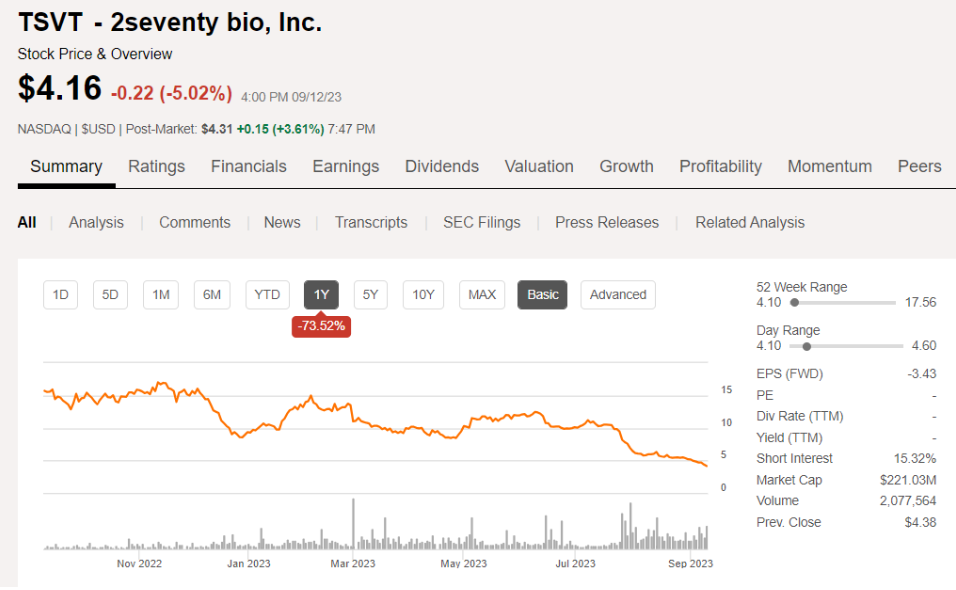 9月12日,蓝鸟生物子公司2seventy bio(股票代码: TSVT)宣布启动一项全面战略重组计划,将进行裁员、削减研发管线,以使其现金跑道延长至 2026 年。