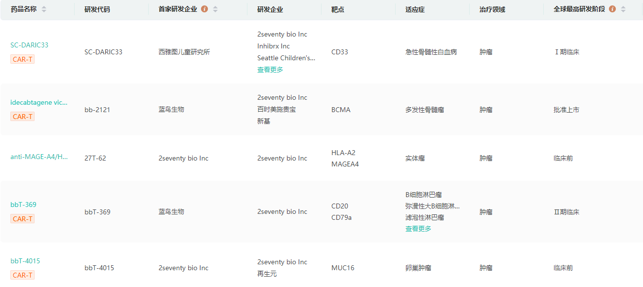 2seventy bio是一家从事癌症革新疗法的研究、开发及商业化的细胞及基因疗法公司,旨在真正颠覆癌症治疗领域。其方法结合其在T细胞工程技术及慢病毒载体基因传递方法的专业知识、细胞疗法的研究、开发及生产的经验以及能够选择性部署以开发用于癌症患者的高度创新的下一代靶向细胞疗法的一套技术。2seventy bio的领先产品ABECMA为获得美国食品药物管理局批准用于治疗多发性骨髓瘤的首个CAR T细胞疗法。