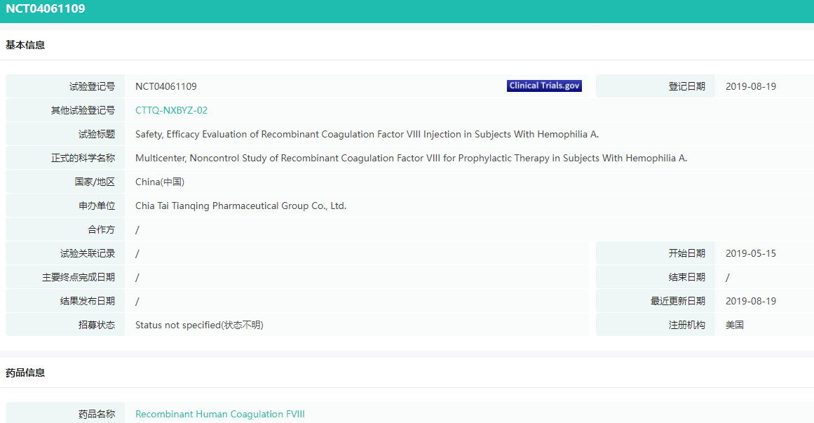 正大天晴「重组人凝血因子Ⅷ」在中国获批