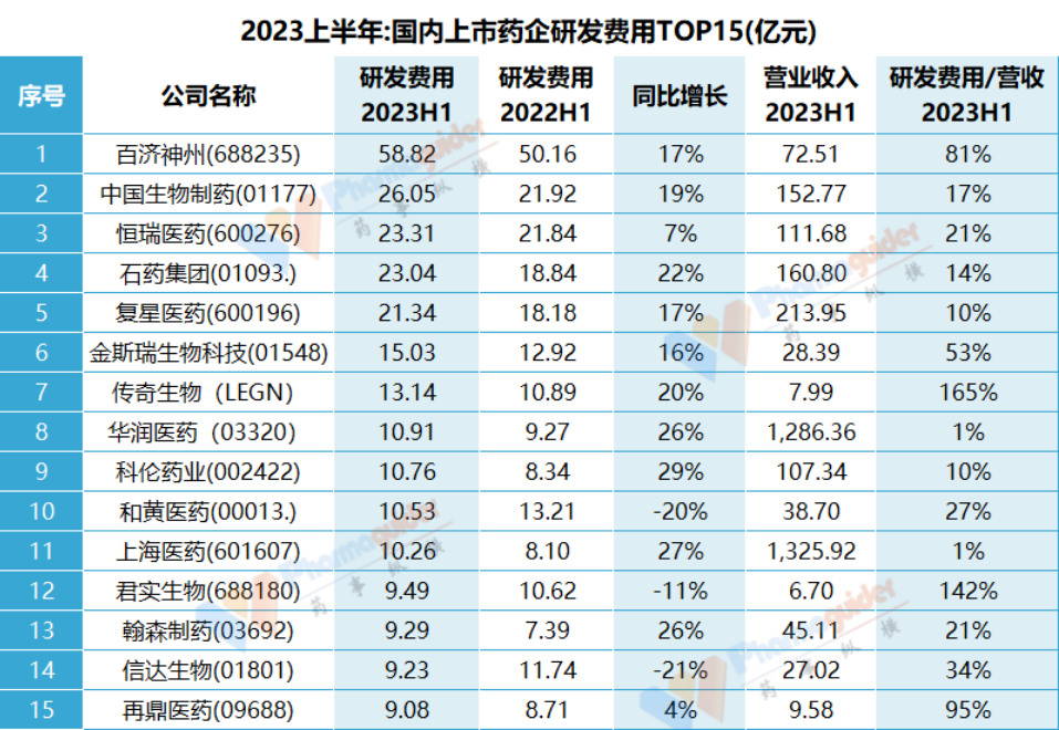2.药事纵横.《2023上半年:国内上市药企研发费用TOP15》