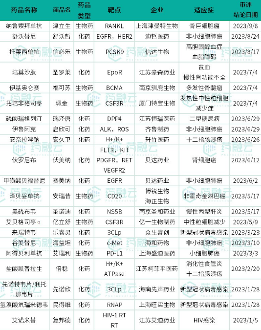 2023年以来,已有21款国产1类创新药上市,其中贝达药业和恒瑞为国内获批新药数最多的药企。从适应症来看,抗癌药占比最多,共有9款,其中5款均为肺癌(4款非小细胞肺癌,1款小细胞肺癌);其次为新冠治疗药物,有3款。