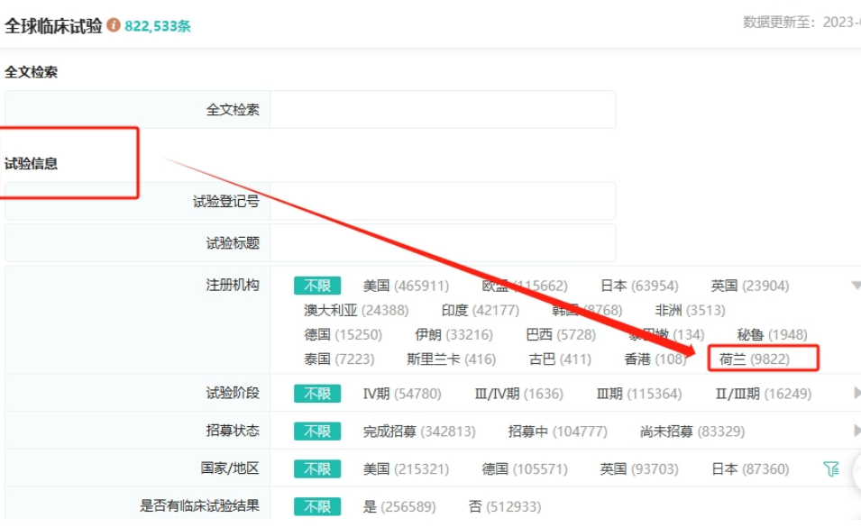 本次更新,我们还新上线了全球临床试验数据库中的荷兰临床试验数据信息,方便您追踪目标药品在荷兰的临床试验进展,了解荷兰临床试验机构的信息情报,方便您进行立项调研,新药研究、以及临床试验研究。