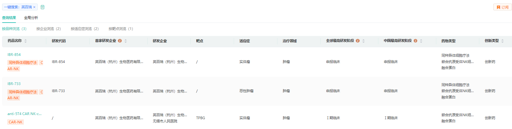 英百瑞基于自有平台技术开发了IBR854、IBR733等多个通用现货型细胞治疗产品,已进行多个研究者发起的临床试验(IIT),初步证明了安全性和有效性,目前IBR854细胞注射液已推进到I期临床试验阶段,另有多个实体瘤和血液瘤的新药正在逐步推进中。