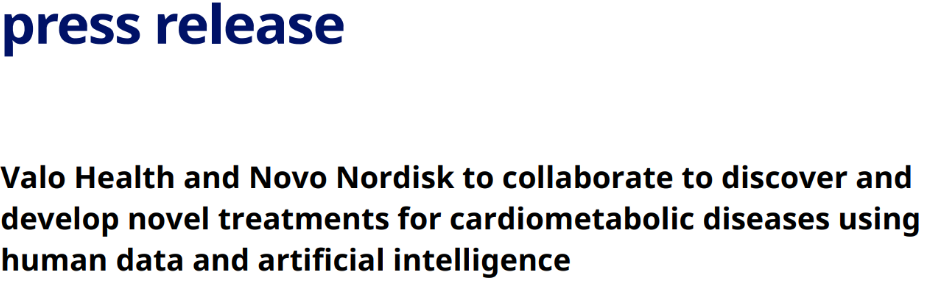 9月25日,诺和诺德宣布,与美国科技公司Valo Health达成合作协议,寻求利用人类数据和人工智能发现并开发心脏代谢疾病(CMD)的新疗法。