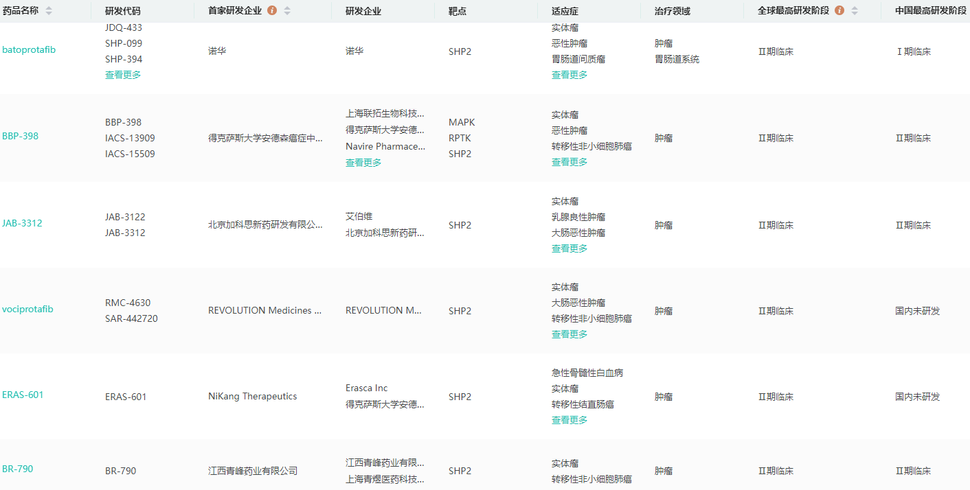 全球SHP2靶点研发管线进度查询