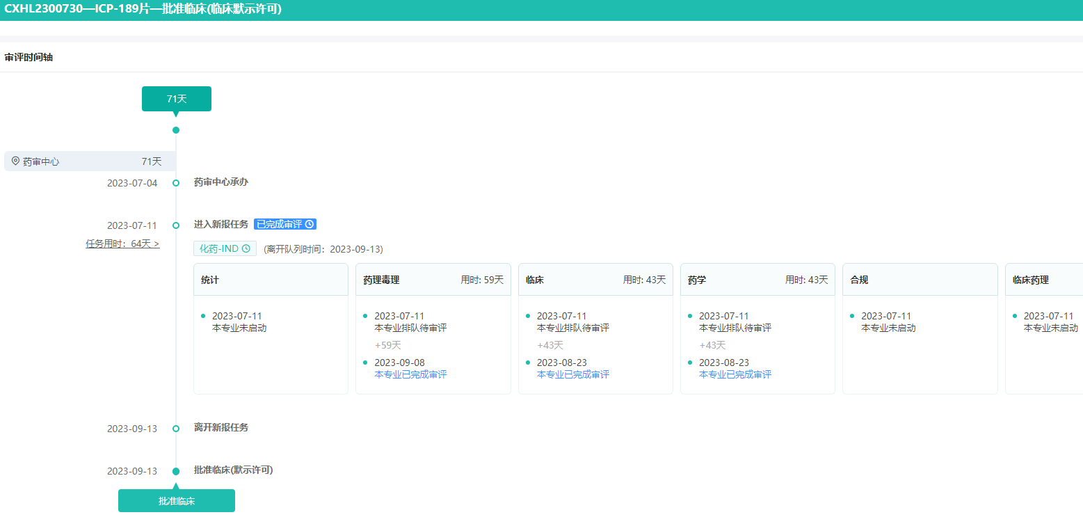 ICP-189片获批临床-审评时间轴