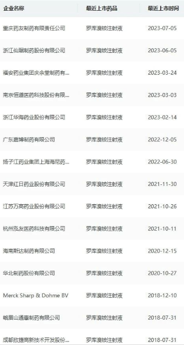 已有罗库溴铵注射液批文的相关企业