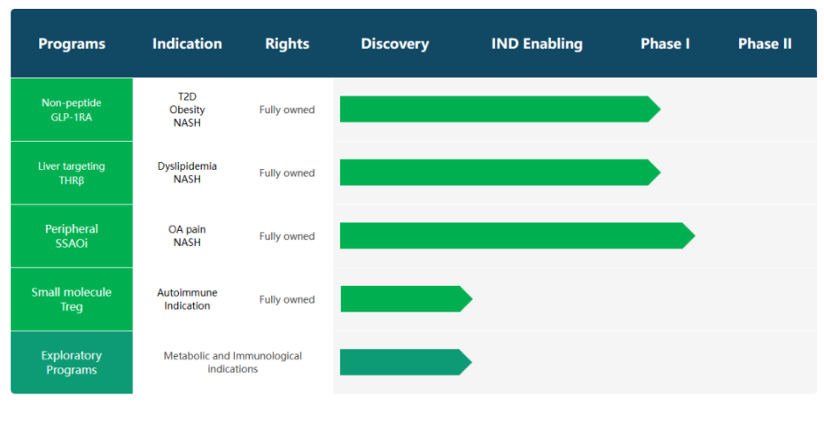 硕迪生物是一家临床阶段的生物制药公司,致力于开发用于代谢性疾病和肺部疾病的新型口服小分子疗法。目前,该公司专注于G蛋白偶联受体(GPCR)靶向疗法开发,在研管线已有2款进入临床开发阶段。