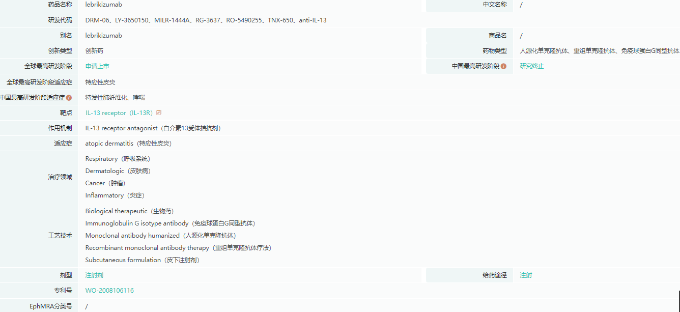 lebrikizumab基本信息