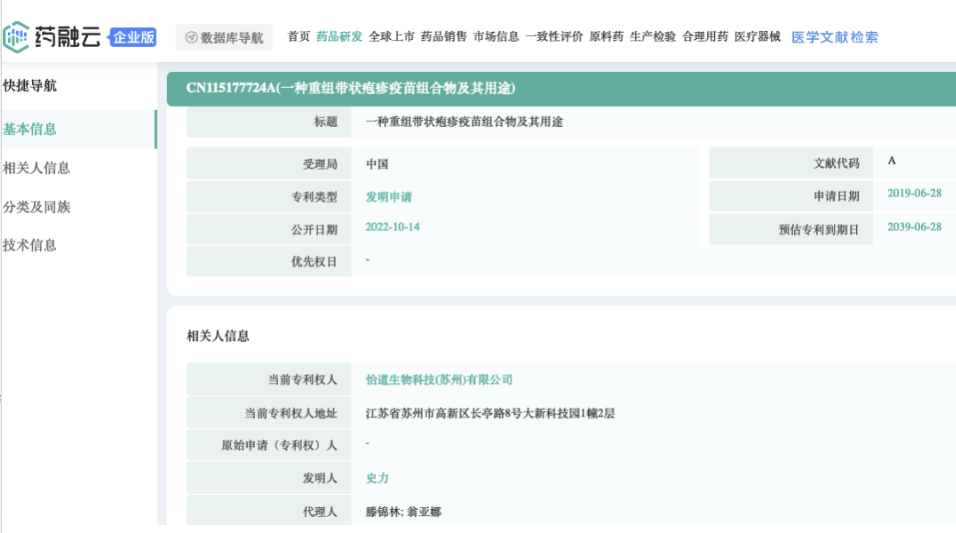 除此之外,Zostavax由默沙东研制的疫苗暂时未在中国上市。据药融云数据库显示,本领域其他在研的境内企业有:绿竹生物、博沃生物、迈科康生物、中慧元通生物、智飞龙科马、怡道生物、斯微生物、艾博生物、瑞科生物、嘉晨西海(RNA带状疱疹疫苗)、浙江天元(步长制药)、华诺泰、重庆亦度生物、康乐卫士等等。