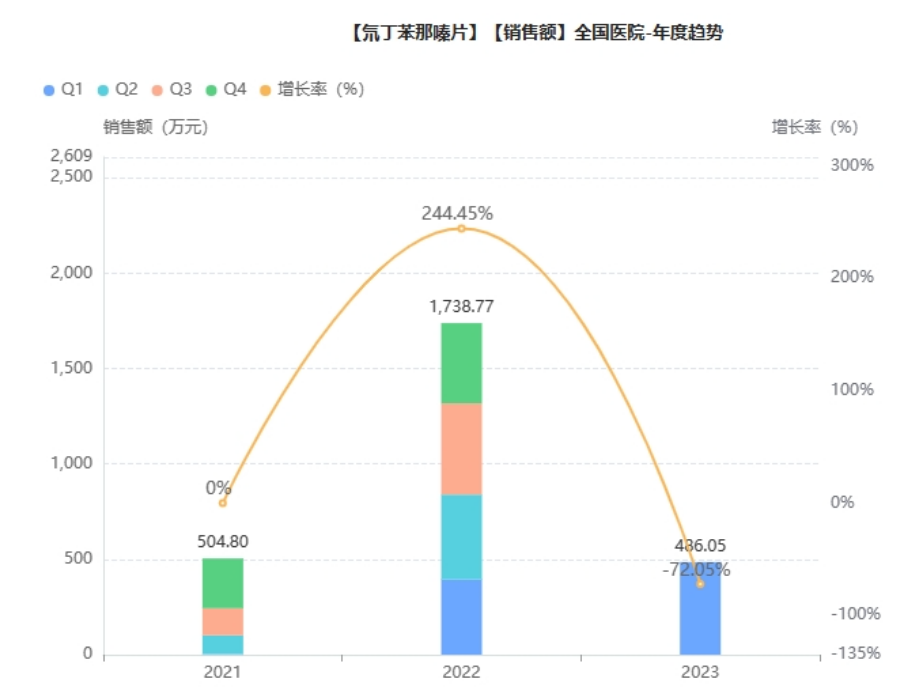 2020 年 12 月,氘丁苯那嗪被纳入 2020 年国家医保药品名单,极大提高了患者的用药可及性,从申请上市到进入国家医保,仅耗费1年时间;2021 年 1 月,氘丁苯那嗪在中国正式上市。2022年院内销售额为1738万元。