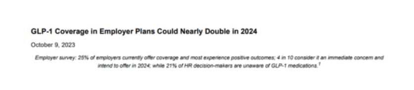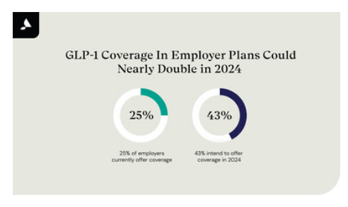 2023年10月9日,Accolade 公司(纳斯达克股票代码:ACCD)公布了一项关于GLP-1 药物的受欢迎程度和采用情况的雇主调查的结果,调查结果显示,2024年为GLP-1药物提供健康保险的美国雇主预计将增加近一倍。