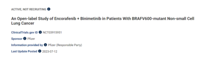 FDA 的批准基于正在进行的2期 PHAROS临床试验 ( NCT03915951 ) 的数据,该试验是一项开放标签、多中心、单臂研究,研究BRAFTOVI + MEKTOVI 联合疗法对初治和既往接受过治疗的BRAF V600E 突变的转移性NSCLC患者的影响。