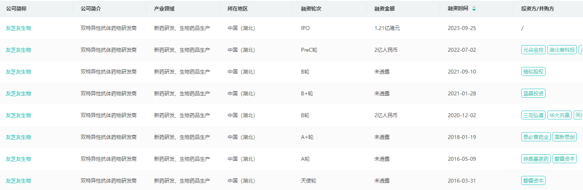 友芝友生物制药是一家专门从事以肿瘤免疫疗法为核心的生物制药公司,专注于双特异性抗体药物的研发与产业化。2018年1月与国内制药龙头企业石药集团达成战略合作,以3.56亿元人民币收购武汉友芝友39.56%股权,成为目前其第一大股东。