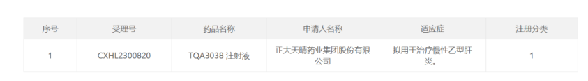 10月19日,中国国家药监局药品审评中心(CDE)官网公示,正大天晴申报的1类新药TQA3038注射液获得临床试验默示许可,拟开发用于治疗慢性乙型肝炎。