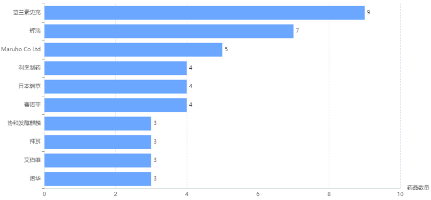 治疗特应性皮炎药品数量TOP10公司