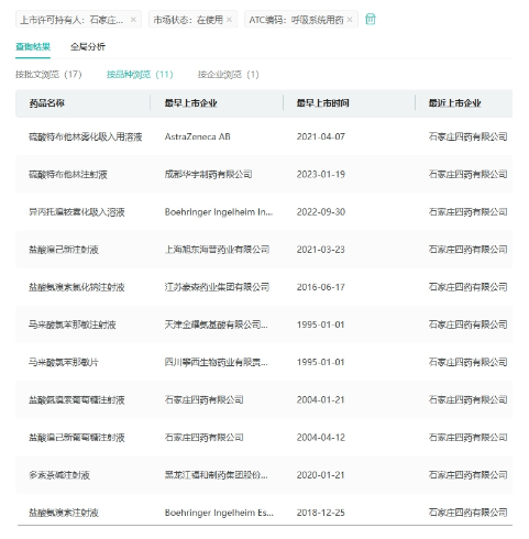 石家庄四药呼吸系统用药批文情况(截至2023.10.23)