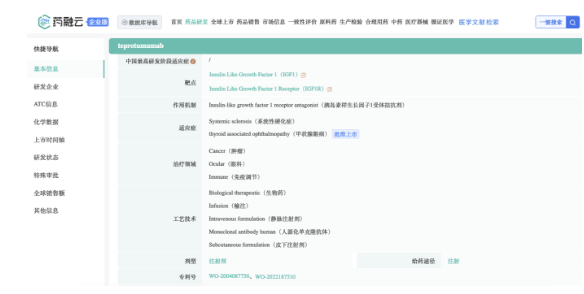 要解锁更多企业药品研发信息吗?查询药融云数据库(vip.pharnexcloud.com/?zmt-mhwz)掌握药品各国上市情况、药品批文信息、销售情况与各维度分析、市场竞争格局、一致性评价情况、集采中标情况、药企申报审批信息、最新动态与前景等,以及帮助企业抉择可否投入时提供数据参考!注册立享15天免费试用!