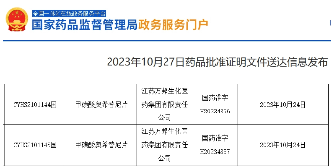 近期,NMPA发布最新一批药品批准证明文件送达信息(详见今日次条),其中,江苏万邦生化的4类仿制化药甲磺酸奥希替尼片获批上市,斩获首仿+首家过评。