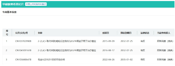 奥希替尼国内化合物专利CN103702990将于2032年7月到期,目前仅江苏万邦生化布局该仿制药。