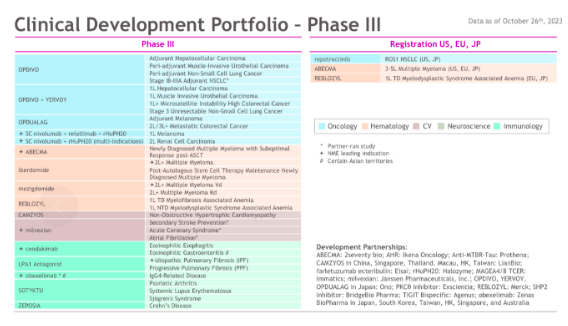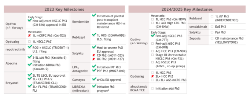 此外,其PD-1单抗Opdivo(俗称“O药”)2023Q3营收23亿美元,同比增长11%,Q1营收22.02亿美元,Q2营收21.45亿美元,2022年总营收达82.49亿美元,今年有望超越2022年全年营收。