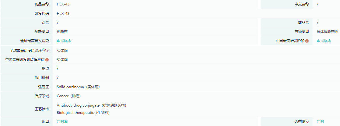 这是复宏汉霖首批步入临床开发阶段的ADC创新药。目前针对PD-L1靶点开发的ADC产品较少,HLX43是国内首个进入临床阶段的靶向PD-L1的 ADC产品。此外,公司管线中多款ADC/AXC候选药物正处于临床前开发阶段。