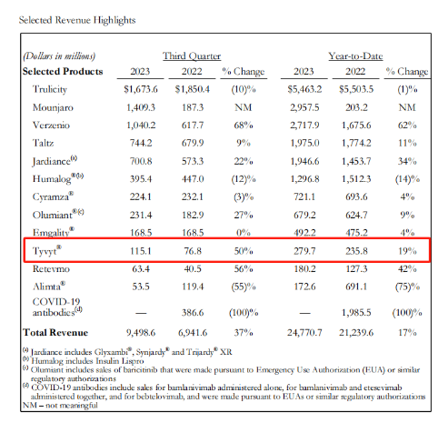 Tyvyt(达伯舒,sintilimab,信迪利单抗注射液)前三季度销售收入2.8亿美元,同比增长19%;其中Q3销售收入1.2亿美元,同比增长50%。