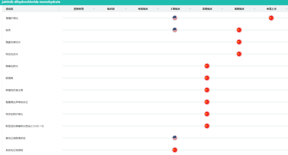 艾玛昔替尼(SHR0302)是恒瑞医药研发的JAK1抑制剂,是1类新药,其于今年6月提交的用于治疗中重度特应性皮炎的上市许可申请已获受理。艾玛昔替尼在国内外开发的斑秃适应症,目前在国内已处于Ⅲ期临床试验阶段,在美国处于II期临床。