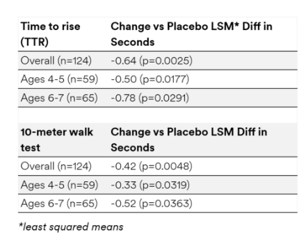 在这项研究中,125名患者接受安慰剂或由Sarepta开发的基因疗法Elevidys,治疗52周后,接受Elevidys治疗的患者的北极星动态评估(NSAA)总分改善了2.6分,而接受安慰剂治疗的患者改善了1.9分。但两组间差异无统计学意义,p值为0.24。公司表示,次要终点达到了统计学意义,并表明与安慰剂相比,该药帮助患有杜氏病的男孩更好地站立和行走,这些能力随着时间的推移会逐渐丧失。