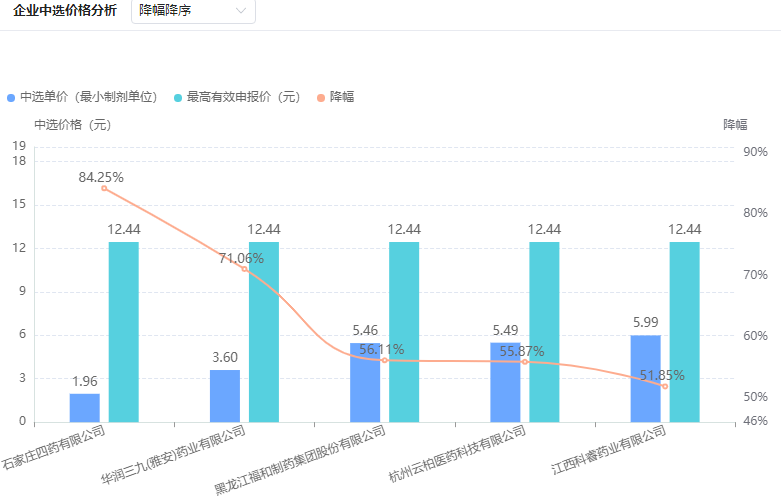 倍特药业拟中选药品降幅排行