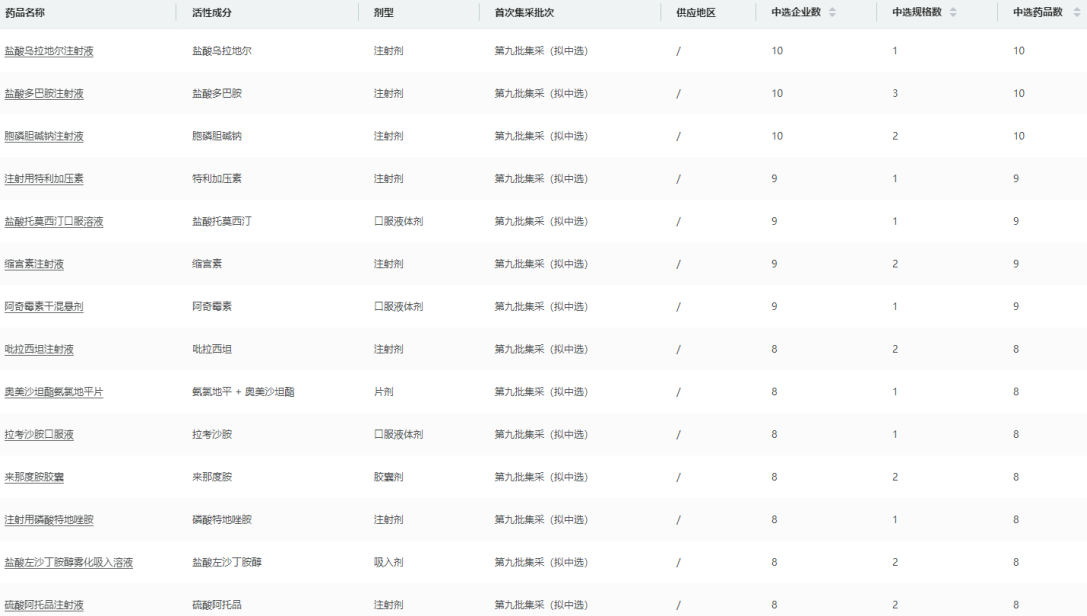 第九批国家药品集采品种信息查询