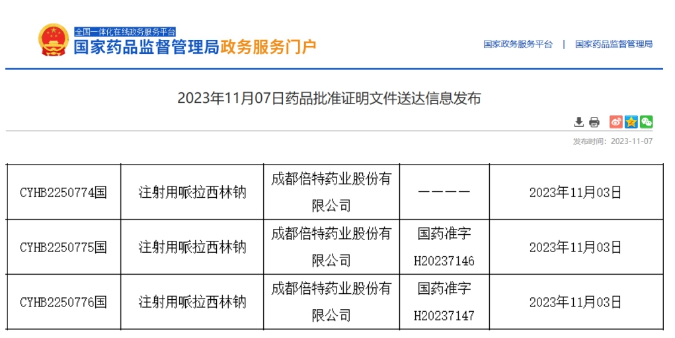 近日,据NMPA官网公示,成都倍特药业提交的注射用哌拉西林钠化药过评。2023年至今,倍特已有27个品种(45品规)过评,其中碘普罗胺注射液、利匹韦林片(首仿)、达可替尼片(首仿)、盐酸西替利嗪口服溶液4个品种为首家过评。