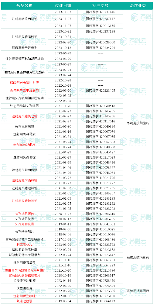 倍特药业已过评的系统用抗感染药(标红为首家过评)